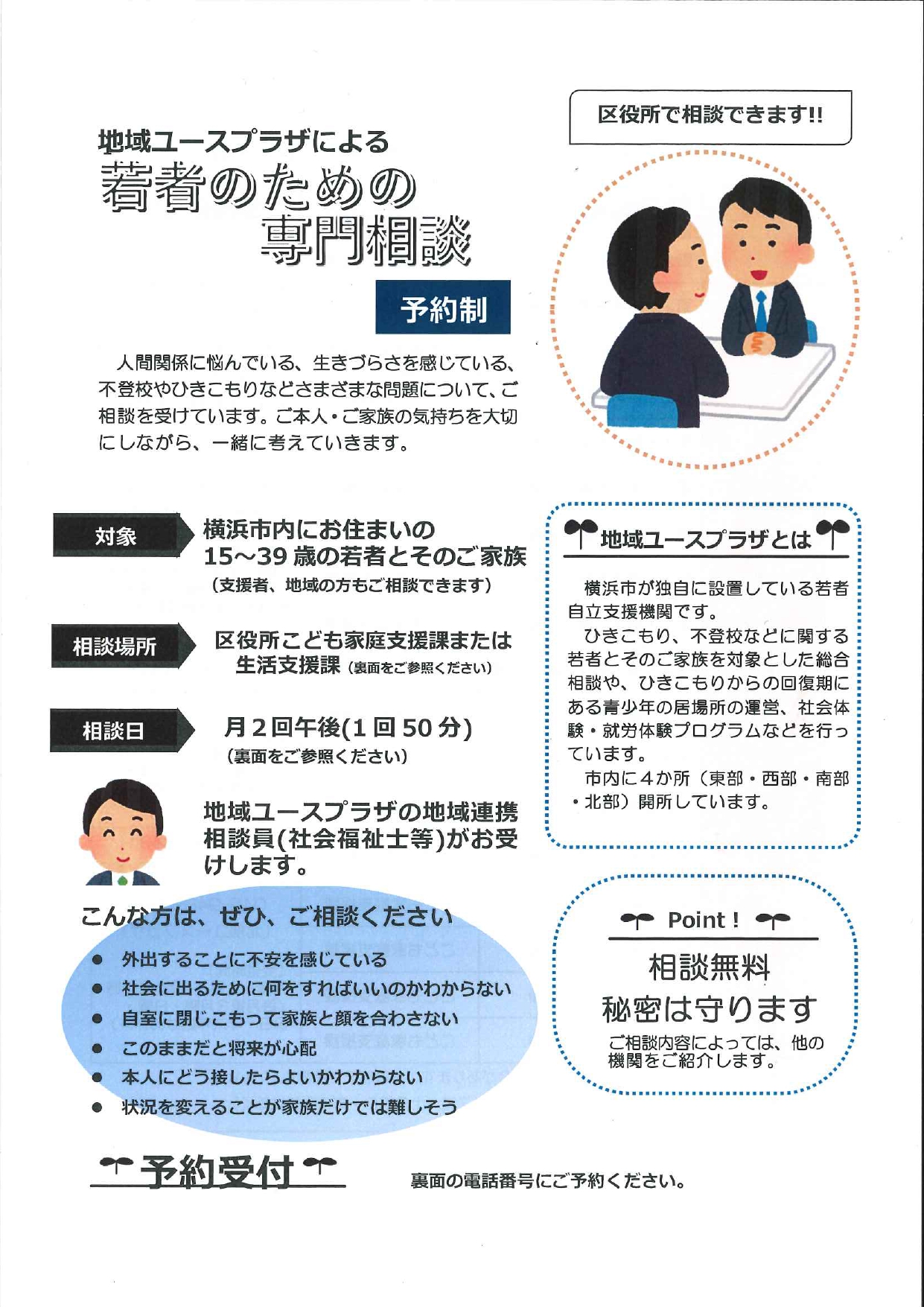 横浜市にお住いの15~39歳の若者とそのご家族(支援者、地域の方もご相談できます)